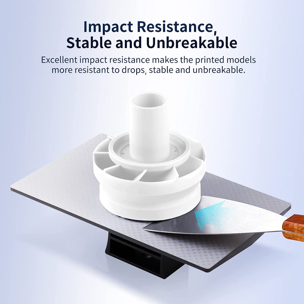 • Esta resina 3D tiene resistencia al impacto y hace que los modelos impresos sean más resistentes a las caídas, estables e irrompibles.