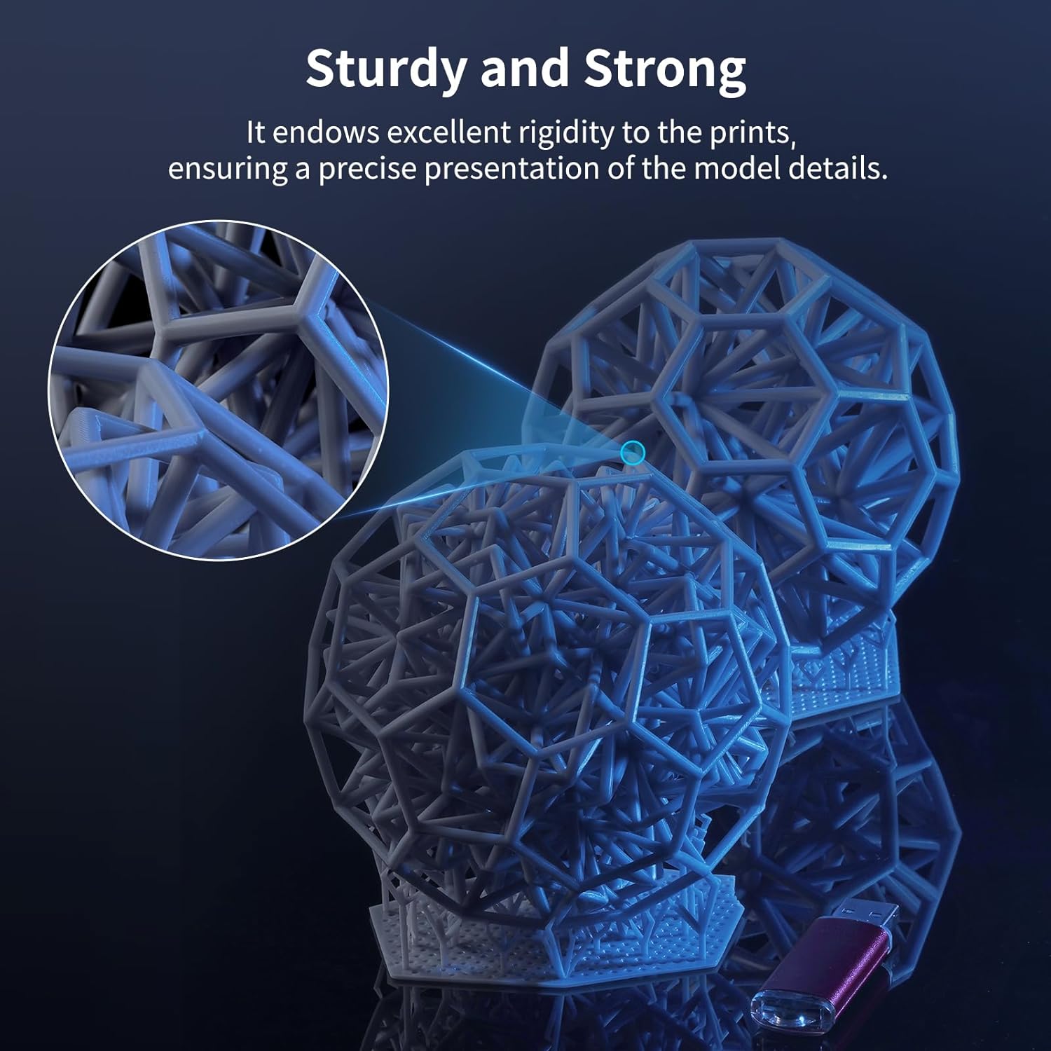 Resistente: no se deforma fácilmente, lo que confiere una excelente rigidez a las impresiones, asegurando una presentación precisa de los detalles del modelo.