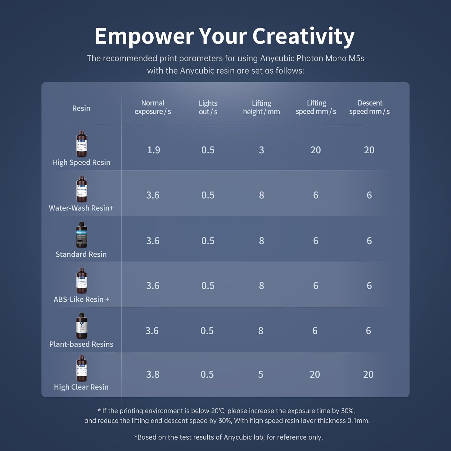 • Compatible con resinas 3D de diferentes marcas, como Elegoo, Phrozen, Siraya, Anycubic, Resione, 3DMaterials, Esun, Jamg He y muchas mas.