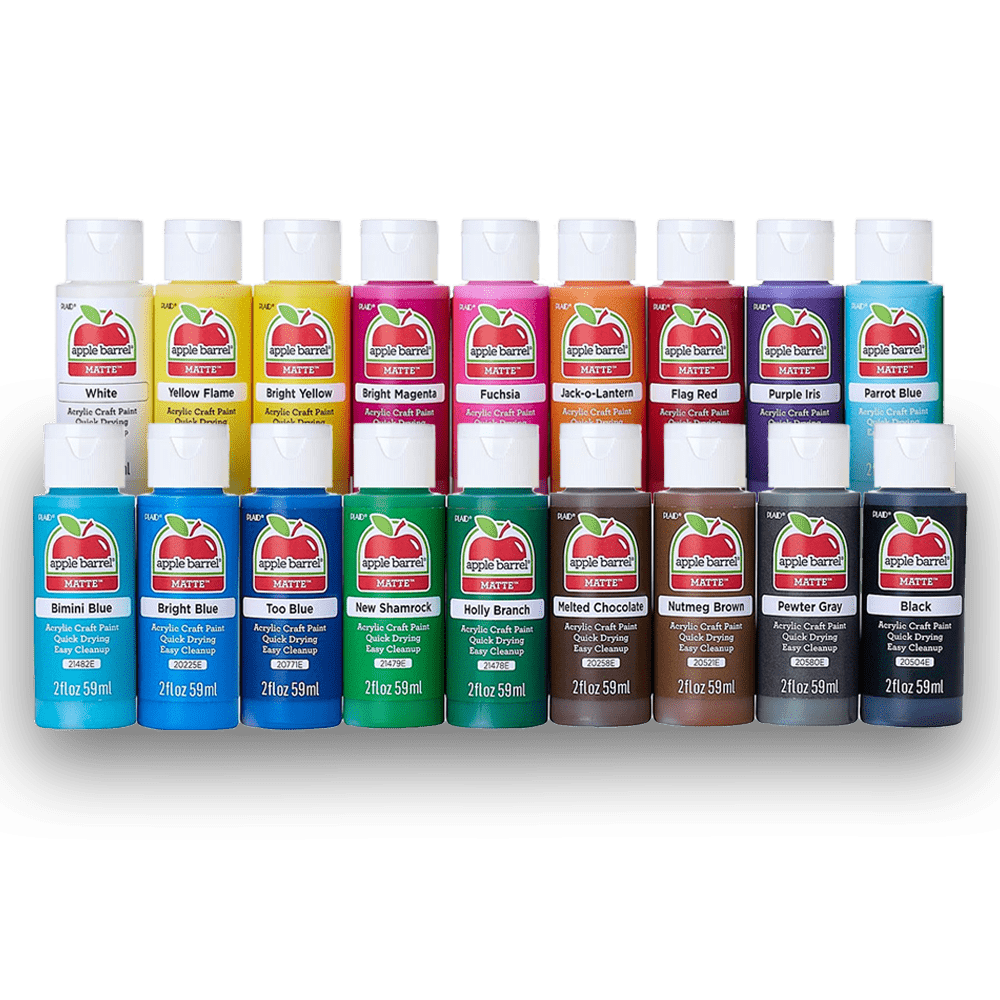 ¡Use la pintura acrílica Apple Barrel en una variedad de superficies que incluyen miniatura, madera, espuma de poliestireno, yeso, terracota y mucho más! Con 18 colores vivos, puede aplicar con brocha, estampar, estarcer o aplicar con esponja esta pintura acrílica en todos sus proyectos.