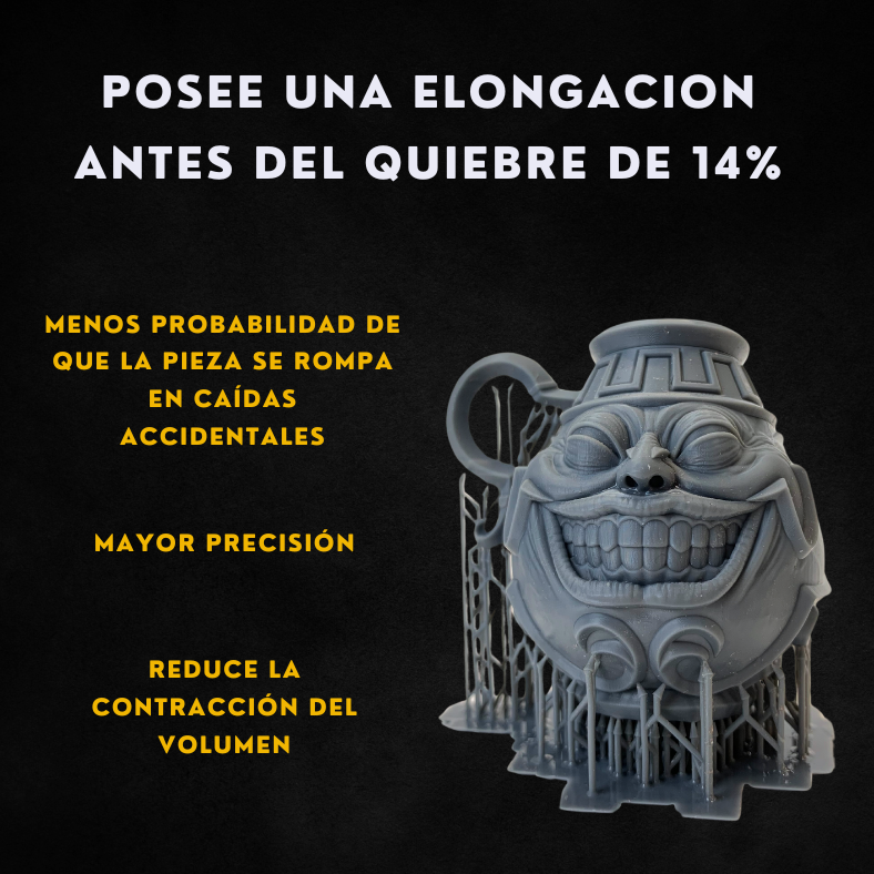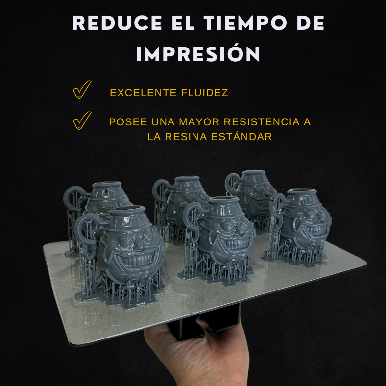 - Creada para reducir el tiempo de impresión con su excelente fluidez, y posee una resistencia mayor a la resina 3D estandar.