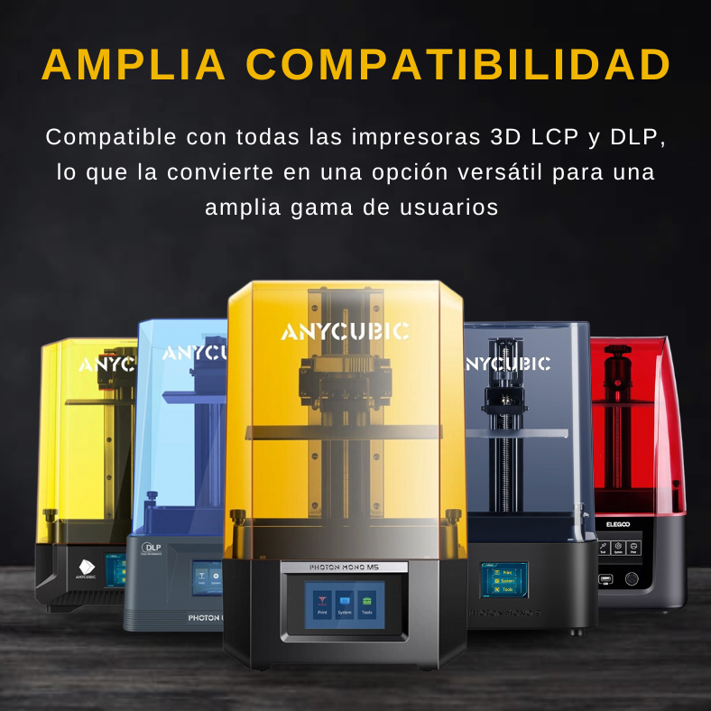 - Esta resina 3D tiene una alta precisión y excelente compatibilidad con impresoras de resina populares como Anycubic, Elegoo, Creality, Epax, Flashforge, Phrozen y muchas mas.