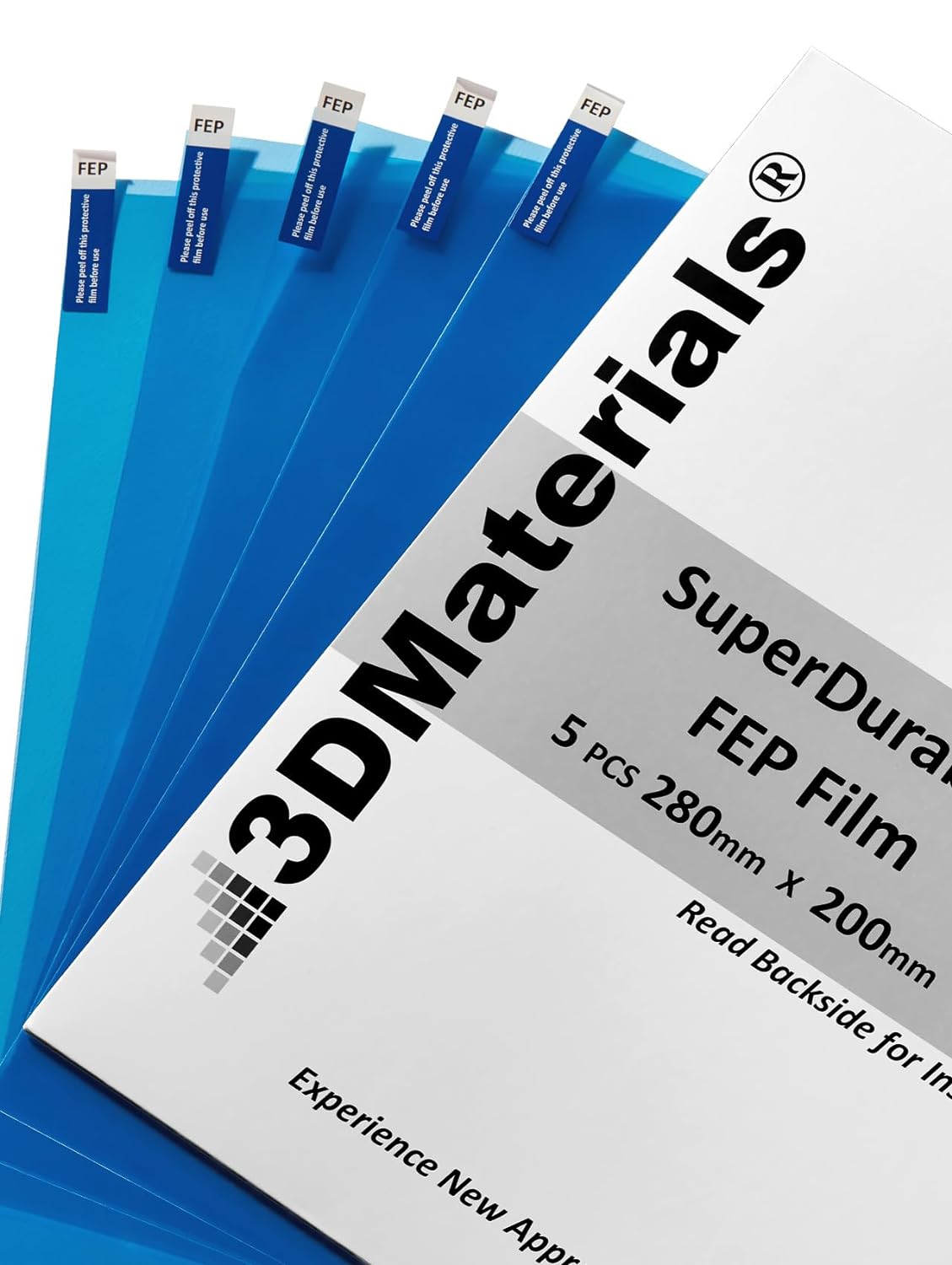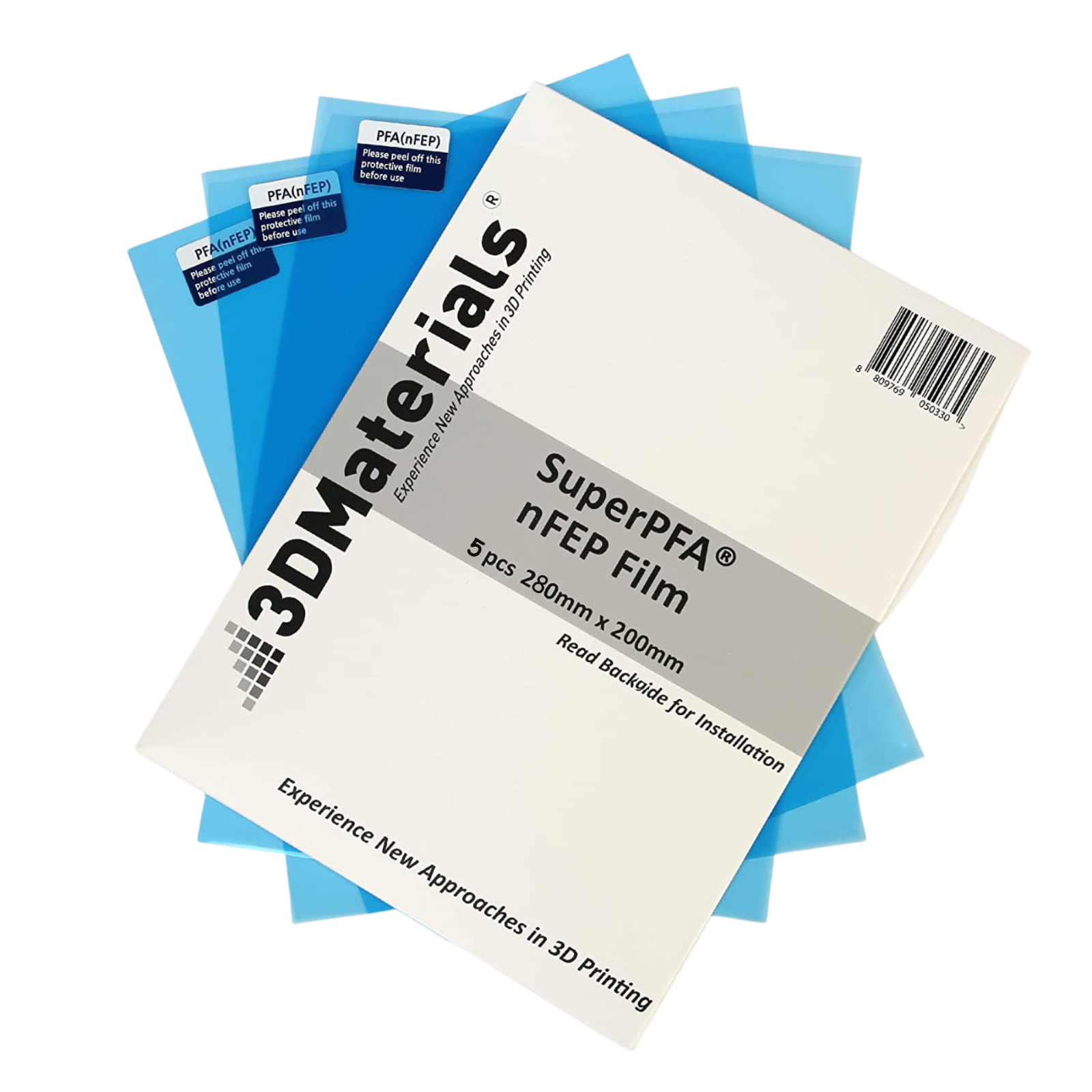 SuperPFA Película nFEP 3D Materials 280 mm x 200 mm (5 piezas), compatible con las impresoras de mayor dimension mas populares como Anycubic Mono X, Elegoo Saturn, Creality, Phrozen, Epax y mas.