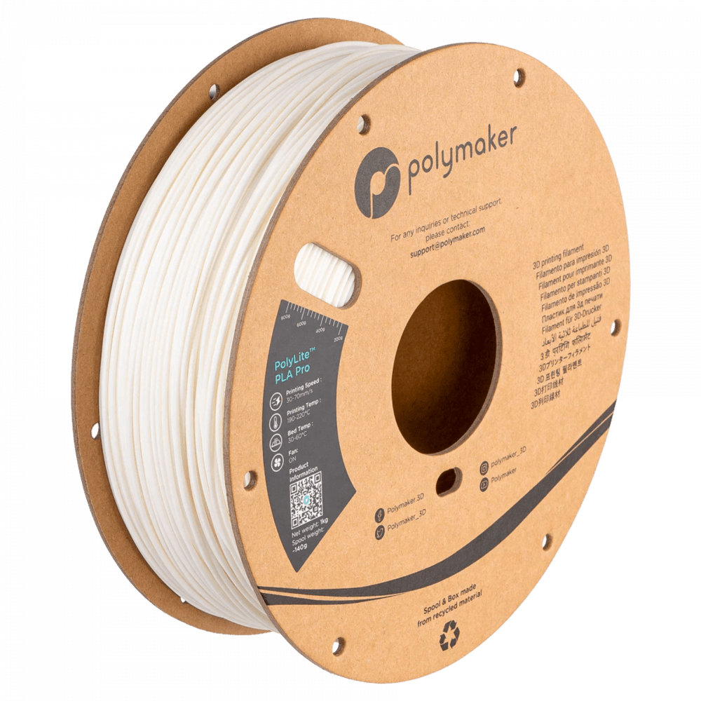 PolyLite PLA Pro de Polymaker es un filamento de ácido poliláctico (PLA) de alto rendimiento diseñado para ofrecer una experiencia de impresión 3D excepcional. Combina las mejores características del PLA tradicional con una mayor resistencia, rigidez y resistencia al impacto, convirtiéndolo en la opción ideal para una amplia gama de aplicaciones.