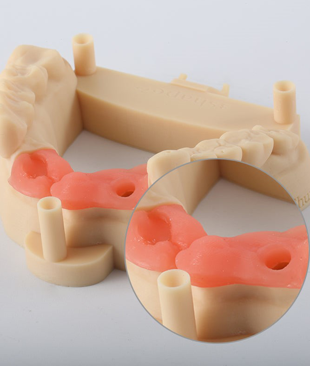 Tacto suave: las impresiones de resina F80 tienen una dureza Shore de 50-60A, suaves al tacto, llenas de elasticidad. La resina Pink F80 es perfecta para hacer modelos de encías dentales.