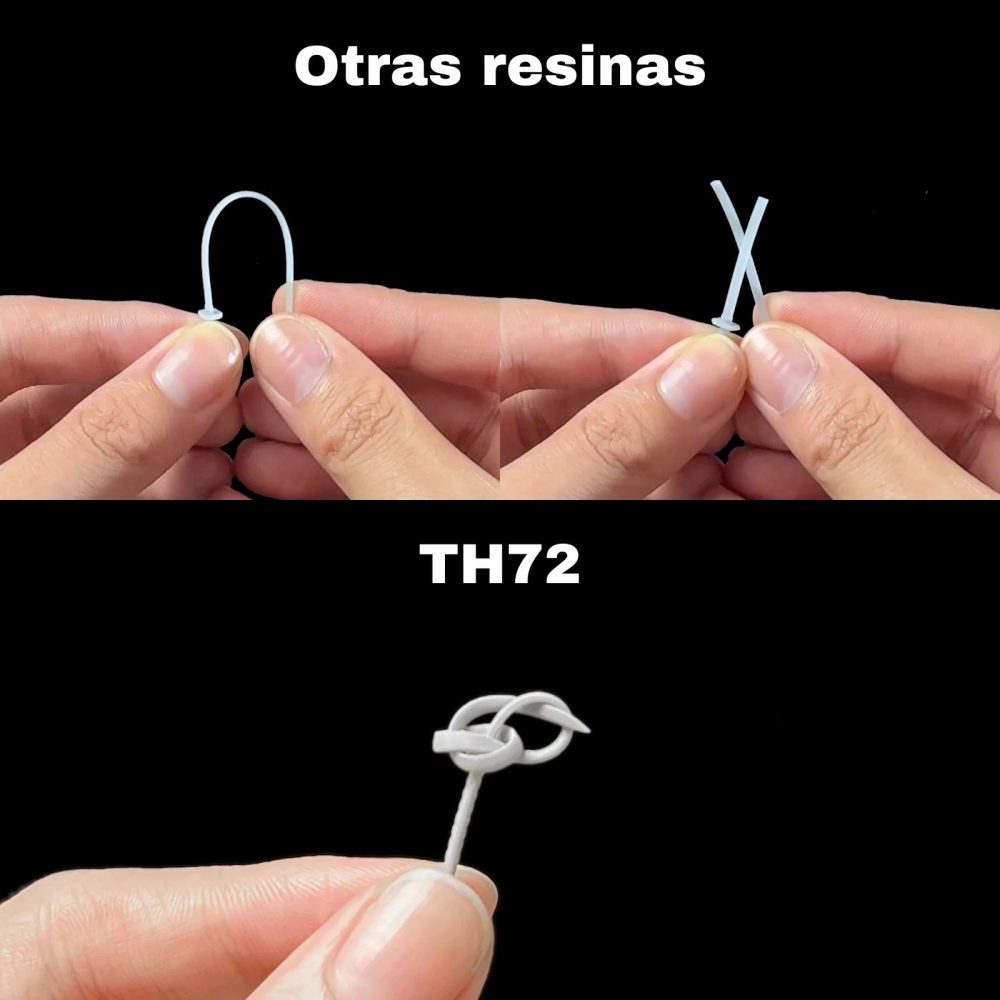 - Las impresiones de Resione TH72 pueden soportar caídas accidentales y pueden doblarse en un grosor de pared de menos de 3 mm.