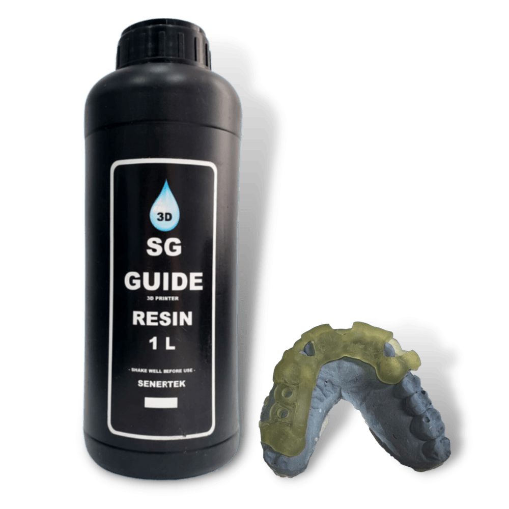 - Esta resina 3D se vuelve un poco amarillenta despues de curar. Si requiere una resina biocompatible para guias dentales transparente, tenemos Senertek Ortho Model .