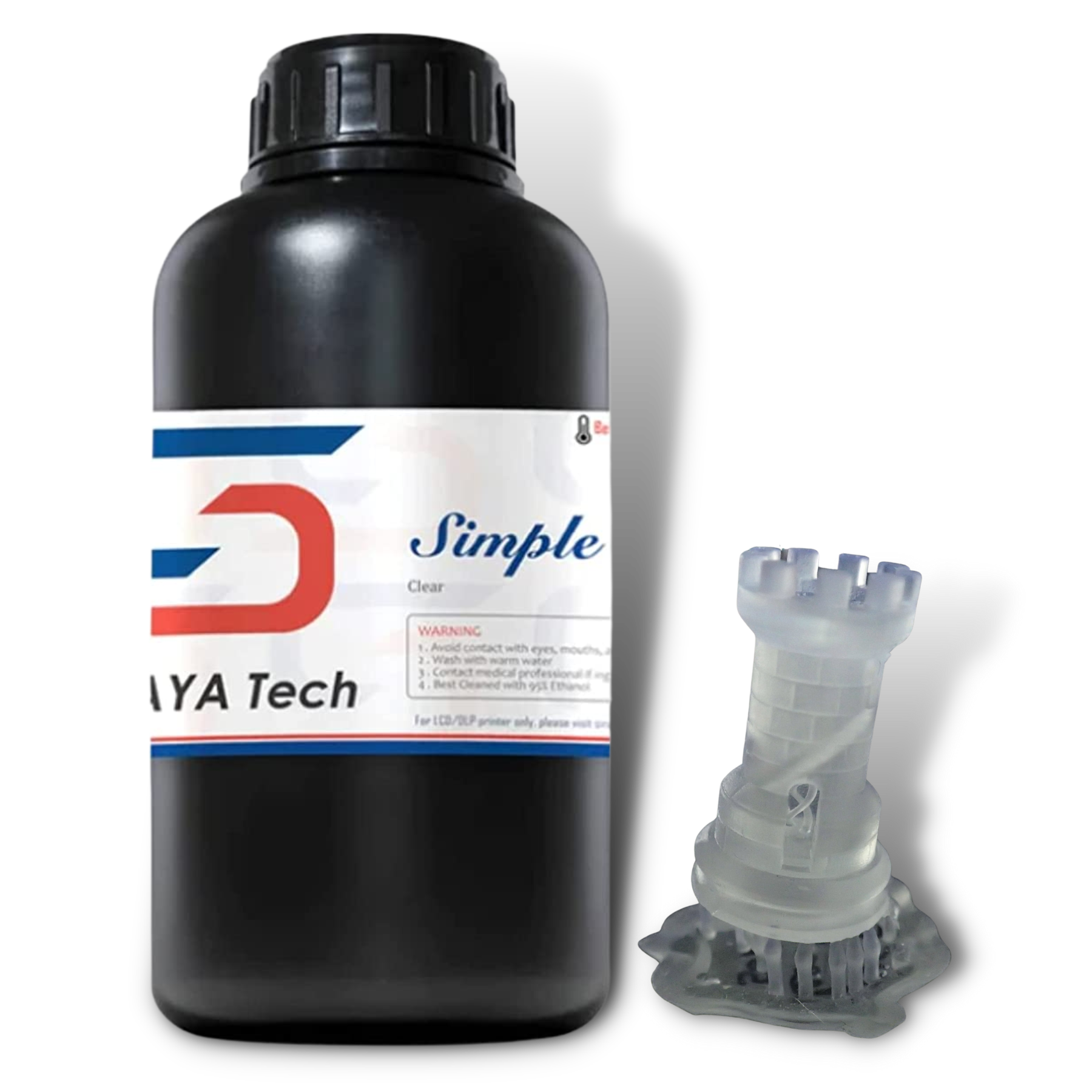 La resina Siraya Simple Clear también está formulado para imprimir rápidamente con una alta tasa de éxito en impresoras 3D LCD. A diferencia de muchas resinas de ingeniería, es muy fácil de limpiar con alcoholes comunes y después de curar rápidamente. Tiene una excelente resolución, cebada bien y es utilizado por los fabricantes de modelos para crear esculturas como piezas de arte. Y no huele para que no apestara tu lugar de trabajo.